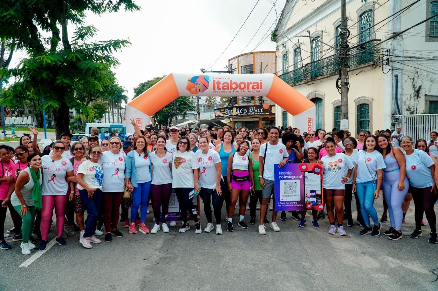 A concentração teve início às 7h, na Praça Prefeito Roberto Pereira dos Santos, de onde as participantes seguiram em caminhada por ruas do Centro, passando pelo Estádio Municipal Alziro de Almeida, o Alzirão. O trajeto foi marcado por disposição, interação e incentivo coletivo.