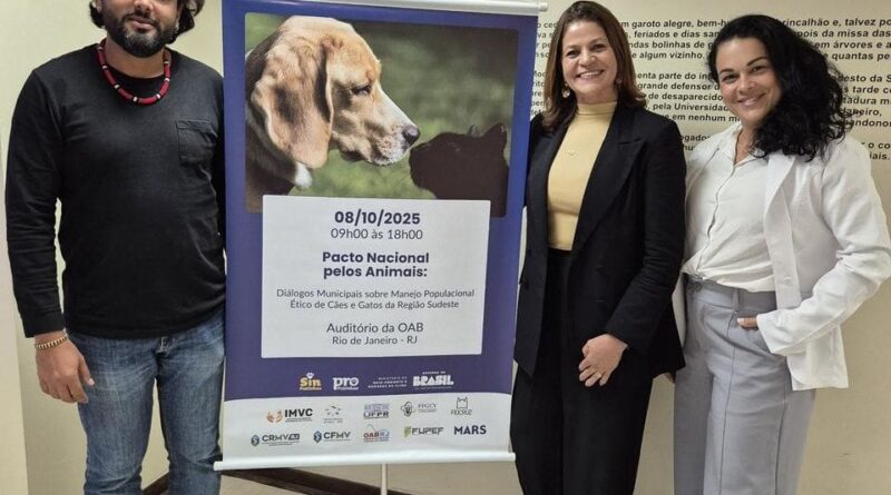 O Instituto Municipal do Ambiente e Bem-Estar Animal (IMAAR), por meio da Superintendência de Bem-Estar Animal de Angra dos Reis, marcou presença nesta quarta-feira, 8 de outubro, no evento “Pacto Nacional pelos Animais: Diálogos Municipais sobre o Manejo Populacional Ético de Cães e Gatos”, realizado no auditório da OAB-RJ. A iniciativa, organizada pelo Ministério do Meio Ambiente e Mudança do Clima (MMA) em parceria com o Instituto de Medicina Veterinária do Coletivo (IMVC), reuniu gestores públicos e especialistas para debater políticas eficazes de controle populacional e promoção do bem-estar animal.