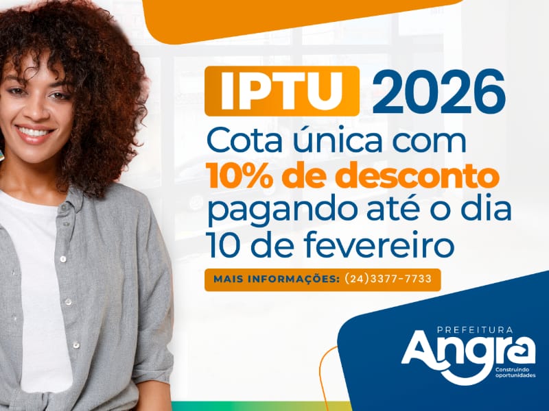 A Prefeitura de Angra dos Reis, por meio da Secretaria de Finanças, alerta os contribuintes para o prazo de pagamento do Imposto Predial e Territorial Urbano (IPTU) 2026. A quitação em cota única, com desconto de 10%, pode ser realizada até o dia 10 de fevereiro, mesma data de vencimento da primeira parcela para quem optar pelo parcelamento.