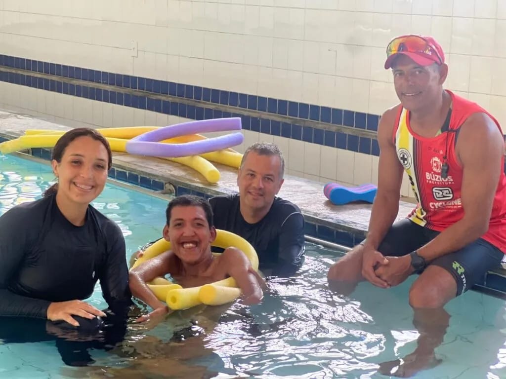 A Prefeitura de Armação dos Búzios, em parceria com a Secretaria de Lazer e Esporte, está promovendo aulas de hidroginástica voltadas para pessoas com deficiência física. As atividades acontecem às sextas-feiras na sede da Secretaria da Pessoa com Deficiência e têm como objetivo estimular a qualidade de vida, o bem-estar e a inclusão por meio da prática de exercícios físicos adaptados.