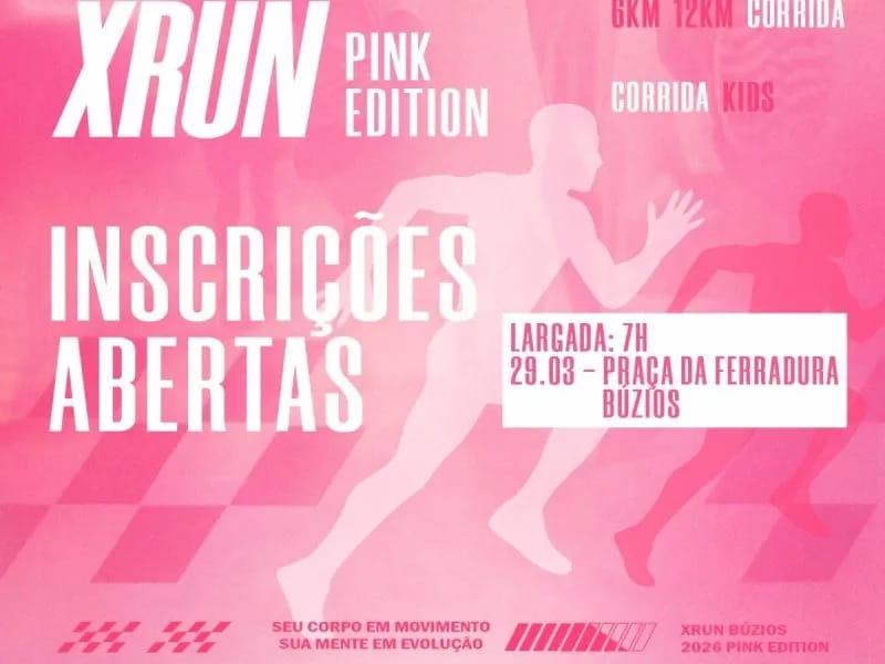 A Armação dos Búzios será palco, no próximo dia 29, da XRUN Pink Edition, uma corrida que celebra a força, a coragem e a energia das mulheres. A largada está marcada para as 7h, na Praça da Ferradura, reunindo atletas, moradores e turistas em um evento que combina esporte e valorização feminina.