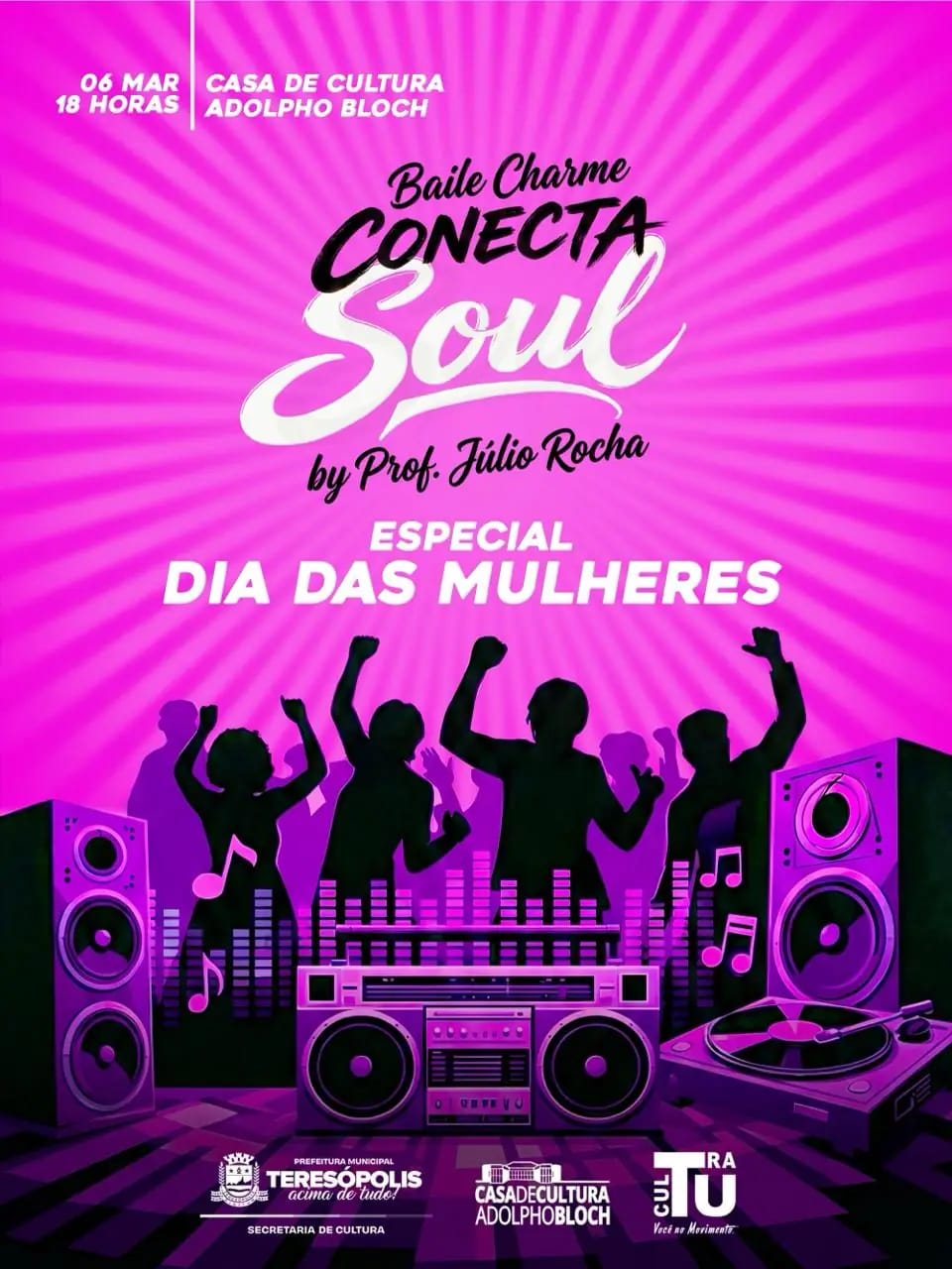 A programação começa nesta sexta-feira, às 18h, com o Baile Charme Conecta Soul, comandado pelo professor Júlio Rocha, na área externa da casa de cultura. O evento promete reunir amantes da dança e da música em um ambiente descontraído, com entrada gratuita e participação aberta ao público.