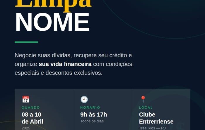 Read MoreO município de Três Rios sediará, entre os dias 8 e 10 de abril, a quinta edição do Feirão Limpa