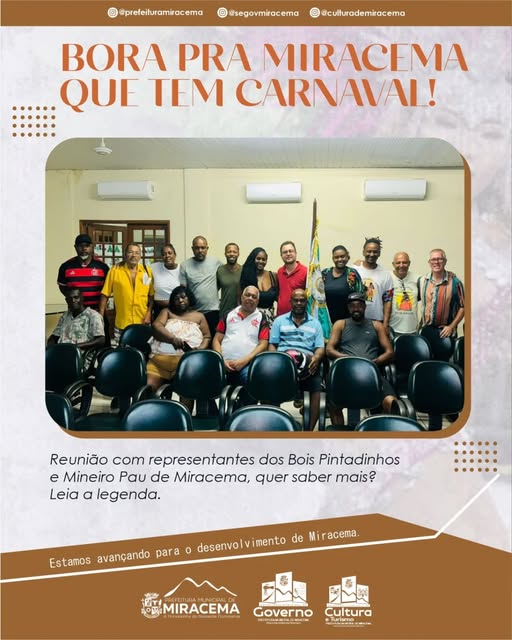 Miracema deu mais um passo decisivo rumo à organização do Carnaval 2026. Em uma reunião realizada nesta semana, representantes dos tradicionais folguedos Bois Pintadinhos e Mineiro Pau se encontraram com a Secretaria de Cultura, a Secretaria de Governo e a Prefeitura Municipal para alinhar estratégias que devem fortalecer a festa e valorizar ainda mais a cultura local.