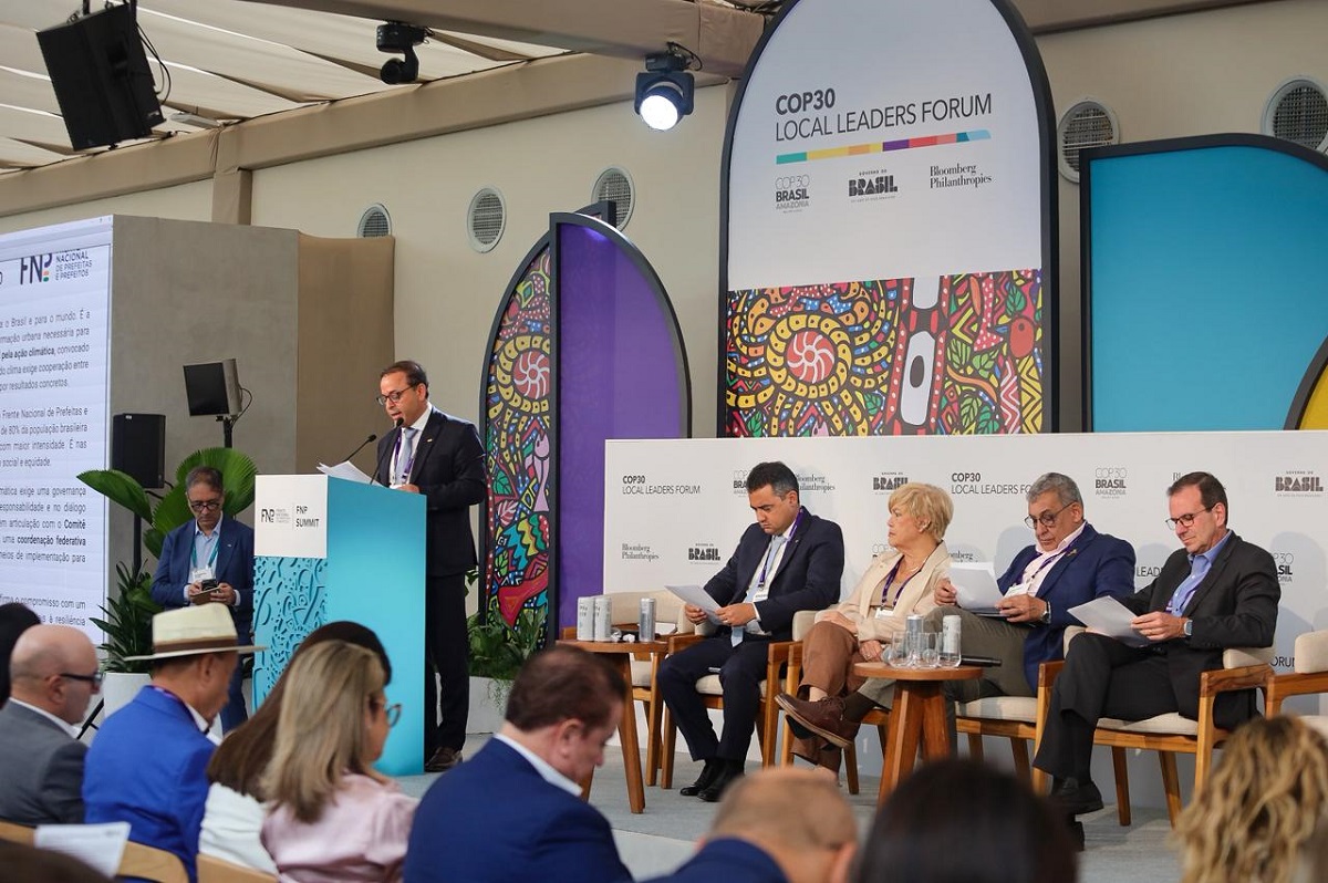 O prefeito de Niterói e vice-presidente de Relações Internacionais da Frente Nacional de Prefeitos (FNP), Rodrigo Neves, teve participação de destaque na 88ª Reunião Geral da entidade, integrada à Cúpula Mundial de Prefeitos, realizada no Museu de Arte Moderna (MAM), no Rio de Janeiro. Durante o encontro, Neves foi o responsável pela leitura da Carta Compromisso, documento que reúne as propostas e posicionamentos dos municípios brasileiros para serem apresentados na COP 30, que terá início no próximo dia 10, em Belém (PA).