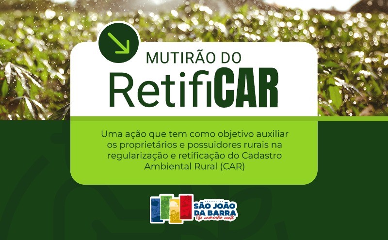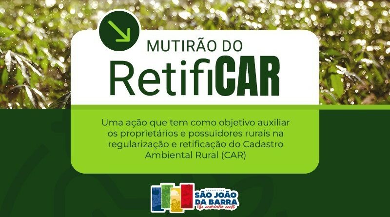 Na próxima terça-feira (26), a Secretaria de Meio Ambiente de São João da Barra realiza o Mutirão Retificar, uma iniciativa voltada a auxiliar proprietários e possuidores rurais na regularização do Cadastro Ambiental Rural (CAR). O evento acontecerá das 10h às 17h, na sede da secretaria, localizada na Rua Joaquim Thomaz de Aquino Filho, 80, Centro, e tem como objetivo oferecer orientação técnica gratuita para corrigir, atualizar ou complementar os cadastros, fundamentais para o planejamento ambiental e o desenvolvimento sustentável da região.