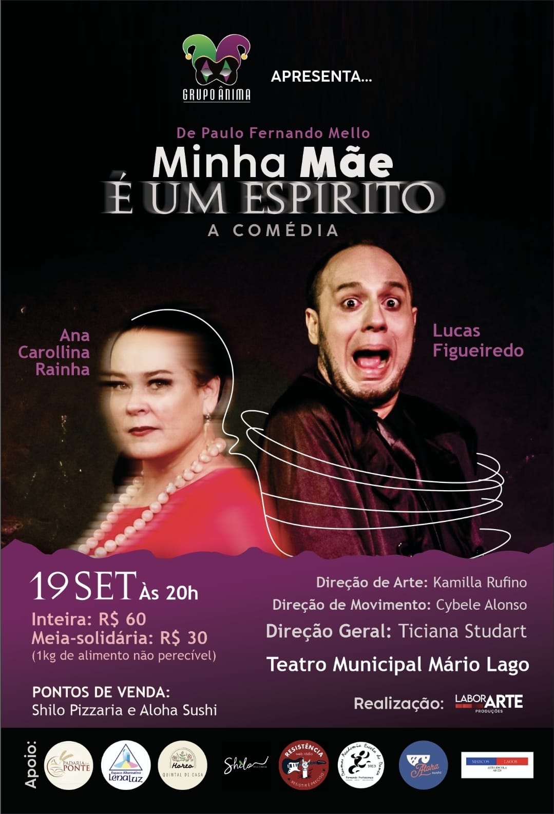 A abertura da agenda acontece na sexta-feira (19), às 20h, com a peça “Minha Mãe é um Espírito – A Comédia”, escrita por Paulo Fernando Mello. O enredo acompanha Rick, um homem de 35 anos em busca de independência, e sua mãe controladora, Lindaura. Com humor, o espetáculo retrata dilemas familiares universais, como apego, convenções sociais e o medo da morte. A montagem conta com atuação de Ana Carolina Rainha e Lucas Figueiredo, direção de Ticiana Studart e realização do Grupo Ânima e LaborArte Produções.